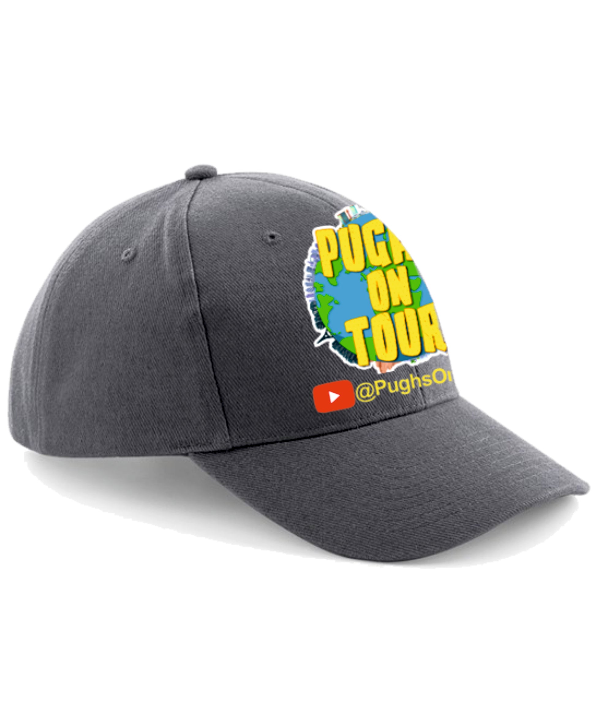 This Heavy brushed cotton cap comes with the Pugh's on Tour Logo printed on the front.